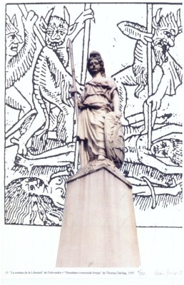 La estatua de la libertad de Dubourdiu + Demonios torturando brujas de Thomas Darling, 1597